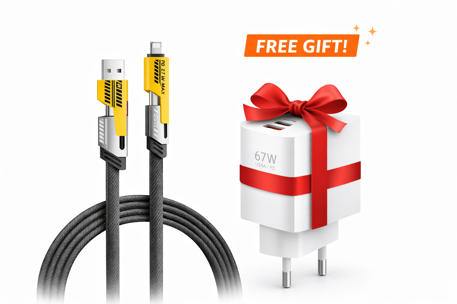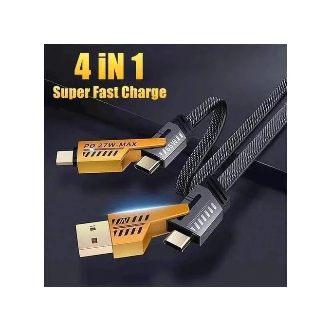 Optimisez votre quotidien avec ce câble de charge multifonction 4-en-1, conçu pour répondre à tous vos besoins de recharge et de transfert de données. Idéal pour la maison, le bureau ou les déplacements, il remplace plusieurs câbles par une seule solution fiable et performante.