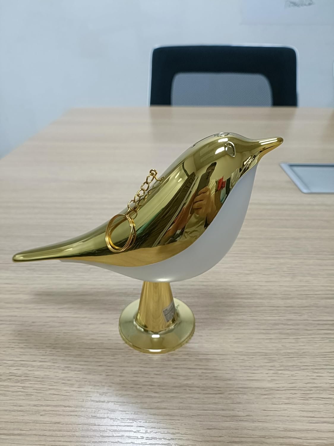 Lorsqu’elle s’illumine, la partie inférieure de l’oiseau s’anime d’une lueur douce et diffuse, projetant une lumière d’ambiance chaleureuse et non agressive. C’est la lampe idéale pour créer une atmosphère intime et raffinée.