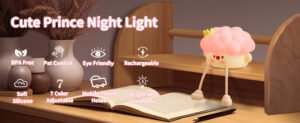 Découvrez notre nouvelle veilleuse « Nuage Couronné », un compagnon lumineux au design adorable qui trouvera parfaitement sa place dans une chambre d’enfant. Avec son allure de petit personnage assis, coiffé d’une couronne dorée, cette lampe n’est pas seulement une source de lumière, c’est aussi un véritable objet de décoration qui stimule l’imagination.